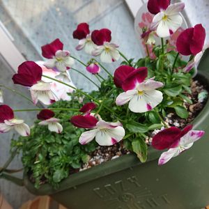 ビオラは今が盛りでしょうか。 お耳が青くなる子ですが、色があまりでなくて白うさぎになっちゃった😅