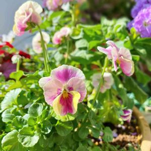 初売りでお迎えしたビオラ🪴 寒さが緩んだ今日☀️、やっと寄せ植え出来ました😅🪴