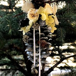 お疲れ様です♫ 多分だけど大王松?の松ぼっくりでの オーナメント𖧷 ⁺..+.∗⑅⿻✧*。ꕀ꙳ 下のは去年作ったもの。。。 これX'masですね😄〜💦 上がちょっとハロウィン意識して 3日前に作ったもの お花はPWさんの ルドベキア アーバンサファリフォレストグリーン ドライフラワーになったので茎をカットしてグルーガンでつけました♫♫ ドライの実はヨウシュヤマゴボウや ナンキンハゼ〜産直コーナーやショップのセールで集めていたもの♫ 今回 糸はとってもかわいいアヴリルさんの糸を何種類かタラーンと✧*。*.+゚✧︎* 2年前、松ぼっくりは3つ貰ったのだけど 物々交換で父の盆栽でできた小さ〜な松ぼっくりを〜💦