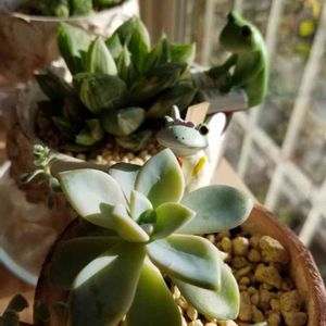 暖かいね☀️ 眩しいね✨ プクプクプックリ。葉っぱを頂いて、名前がわからない多肉ちゃん 可愛いなあ。 🏷️6日はカエルの日に参加させていただきます。😆🎶