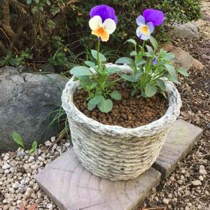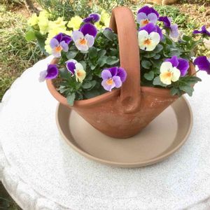 花壇に 植えたけど、ちょっと 残ってしまった ビオラさん 💕 昨日、ちょっと 個性的な鉢に 鉢上げしてあげました 💜