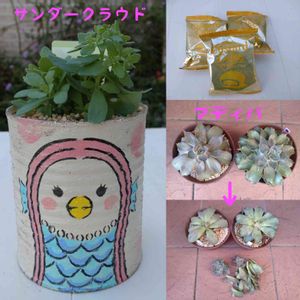 昨日は、あおくーさんが来てくれました😊 初めましてのセダム、サンダークラウドを頂きました。 セダム好きなの覚えてくれてたのね😁👍 早速、作家さんのアマビエ様のリメ缶に植えたよ。 オヤツも😋✌️ でっかい、マディバ胴切りしました。 また、葉っぱが増えちゃった😅