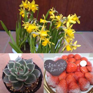 昨日は、あおくーさんが来てくれました。 🍓苺いっぱいのタルト🍓 頂きましたぁ。 めっちゃ美味しいのよ😆 あおくーさん、有難うございました🙇 また、遠足行きましょうね。 お迎え多肉↙ルドルフ ↑水仙、ティタティタも見切り品で100円😝✌️ 3鉢、お迎えです。 確か去年も買ったなぁ😁
