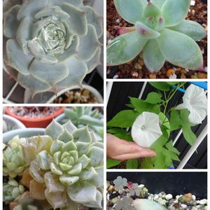 おはようございます⛅️ ←昨晩の雨が溜まって綺麗な名無しちゃん🌱 →ベランダに見知らぬ桃太郎が😳 夫が購入してきたようです😏🙌🍑 ↓屋根付きの棚にいたのにやばい色になっていた色白可愛い名無しちゃん…😭💔 横にお子様できてる😭❤️👶 長女が幼稚園から持ち帰った朝顔が咲きました🌼💕 紫の花が咲いて欲しいとのことでしたが、白は白で綺麗ですね😍 サボテンの横にいた謎の葉挿し👀 樹氷かな? サボはサボ、多肉は多肉でまとめてるから、こぼれ落ちてもここまで到達しないと思うけど…不思議です。