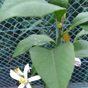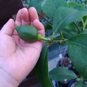 4歳長女の手😂 レモンの実がじわじわ大きくなってきて、ぱっと見これくらいの大きさが10個くらい。 これより小さいのが数え切れないほどある🍋