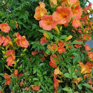 今日の2枚目です。 過去picより、我が家の夏きれいに咲いてくれるノウゼンカズラです😊😊。他の木に巻き付きながら空へ空へと。毎年、長く咲いて楽しませてくれます🎵 [つる巻き月曜日]に参加させてもらいます(^^)d。