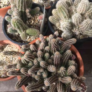 精巧丸と月世界だけだと寂しそうだったので近くにいたミニ達を入れてみた😅 左上から 銀手毬 姫武蔵野 赤花銀手毬 稚竜丸 薫装玉 雪晃(綴化?) 白檀 精巧丸 月世界