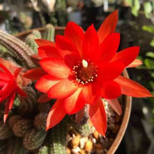 44.ちーむサボテン 【カマエロビビア】 白檀×ロビビア たぶんフロリダオレンジ🍊 セロファンのように透きとおってて まあるい花弁 とっても可愛い♡ 横からのインパクトが強すぎて 笑 令和一発目は あちらを採用しましたが 家族紹介はこちら💁♀️