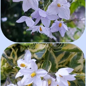ツルハナナスのお花が 咲いています🌿🤍斑入りもキレイです(*´∇`)ノ