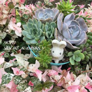 雲ひとつない、澄みきった空の下では とんぼが、クルクルと何匹も追いかけっこ〜〜 黄金の稲穂が眩しいぐらいに輝いて✨✨✨ 艶々の新米を想像しつつ〜〜、 よそのの田んぼの稲穂を、ウキウキ眺めながらぁ!〈笑 昨日は、孫くんの小さな手を繋ぎ散歩しました🎵🎶 平気でコオロギを捕まえちゃう、孫くんにも(4歳) 逞しい成長を感じて、嬉しかったりします💜♪── picは、何度か多肉ちゃんとコラボしたハツユキカズラの 全貌を、ウサちゃんとコラボしてみました💗🐰。・゜・ 数年前に花壇の手前に地植えして、いつの間にか 隣の植木を飲み込んで、ちょっとした お山状態に!(笑〜〜 お山に多肉の鉢をちょこんと乗せて〜〜〜 パシャリしてましたょぉお💗🎵💚🎶💗