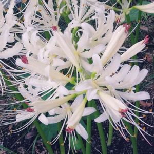 公園で咲いていました💠 ヒガンバナ…ではないですか (๑• . •๑)?? はまなすさん、ソンミンさん ちーこさんのおかげで 白花彼岸花とわかりました。 ありがとうございました😌