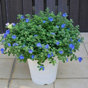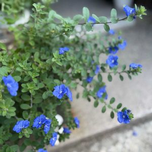PWさんのエボルブルス『ブルーラグーン』です。 結構切り戻したのですが、結局ビヨーンと伸びた先で咲いています。普通のアメリカンブルーのビヨーーーーンに比べたら、伸びは控えめかも。 アメリカンブルーより分枝力に優れているそうなので、もっと中心部にお花が欲しいところです。 9〜10月が、お花が咲くピークとのこと。これから茂るのかな?と期待しています💙💙💙