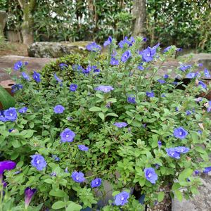 エボルブルス・ブルーラグーン💙築山の樹木の陰でわさわさと拡がって咲いています。雨にも猛暑にも負けない元気な子😆 もう少しで過ごしやすくなるからがんばれー👊😆🎵
