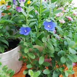 どんどん大きくなるオレガノケントビューティーが涼しげです🌼 ほったらかしの鉢に今年も顔を出したマイクロビオラ🌼 たくさん増えちゃうリシマキア🌼 青い花が可愛いエボルブルス🌼 雑草と思われて夫にほとんど抜かれた矢車菊も1輪頑張ってます😊ハナビシソウ今年も咲きました🌼