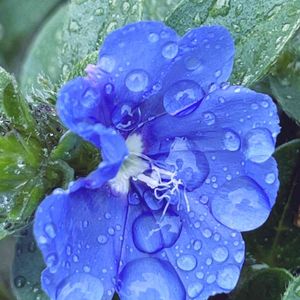 🏷️水曜日は水色 🏷️水滴の水曜日 🏷️青い花と雫マニア💧 雨の水曜日☂️今、撮りです👀📷️✨🎵 💠アメリカンブルー💠 PWブランド 【エボルブルス・ブルーラグーン】💙 今育て始めたのとは、別鉢植え 色が濃いブルーの花💠が綺麗✨✨✨ たくさん花が咲く改良アメリカンブルー らしいです😅