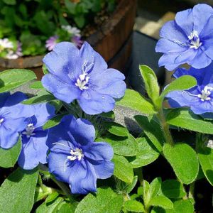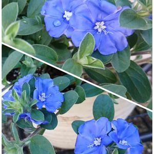 こんにちは👋😃 15日にお迎えしたエボルブルスブルーラグーンが昨日今日の☀️で一気に咲きました😃 やっぱり一般品種とはお花の大きさも付き方も全然違いますね❗