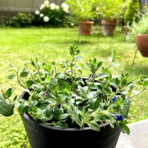 エボルブルス ブルーラグーン ぴょこぴょこと枝先が伸びてきて心持ち大きくなった気がします 大満開🌸ではないけれど日々それなりに開花するので翌朝には花がらがたくさん🥀 時間のあるときにパパッと払っています 先週、今年初めてお店でブルーラグーンを見ました🌱 こんなに小さかったのね…! 一年で随分生長しました