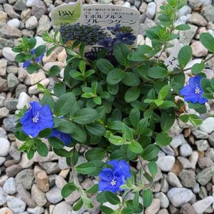 PWエボルブルスブルーラグーン いつも行くスーパーの園芸コーナーで15㎝potの大株で1週間前に入荷したのですがどんどん売れて普段は取り置きしてくれないのですが今日お金が入るからと言って取り置きして貰ってたのを購入しました👍 入荷地にはまだお花は咲いてなかったのですが咲いていて株も大きくなってました😁 昨年はお迎えしたのも遅く冬越し失敗してしまったのですが今回はお花を楽しむにも十分に期間も有るので沢山楽しめると思います👌 植え付けはハイポネックスの培養土にマグアンプkとオルトランを混ぜて最初は6号鉢に植えました‼️