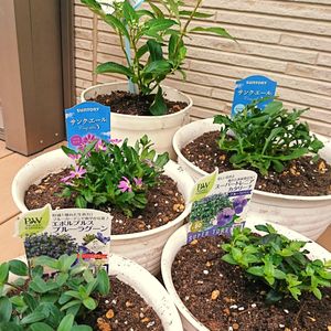 ネモフィラ終わりかかって、青いお花なくなるの寂しいな〜って、昨日HC行ったら、可愛いのあった〜🥰💖こんもりモサモサになると嬉しいな😆💕