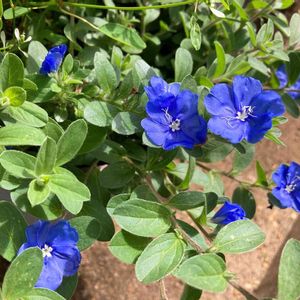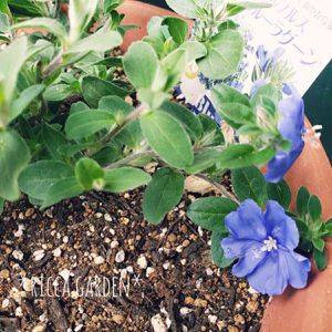 6月1日撮影 PWアンバサダー(5月)の エボルブルス ブルーラグーンとユーフォルビア ダイアモンドフロスト ムシムシ暑いけど元気に育っています💪 エボルブルス(アメリカンブルー)は朝開いて夕方には萎む1日花