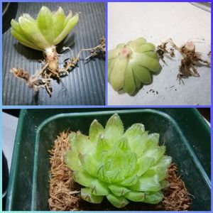 一つ残念なお知らせがあります。我が家で一番美しい氷砂糖の女王の根がやられておりました。 太っとい茎みたいのが残っており、生きている根っこは細いのがちょろり。この茎みたいのがあるとあんまり良くないんだよねぇ〜。ここが腐ったり、虫が湧いたりするし、良い根が出にくい印象。 悩んたけど、ここいらでバッサリ立て直しを図ることに決めました。季節的にどうなのって気もしますが、先送りにしても良いことないしね。 まず緑がほぼなく切り離しを躊躇してたニートを切り離す。あとはあなたの生命力次第だよ。そして芋みたいになった元茎の地下茎部分を切り離す。そして根っこを出す気になるまで乾かす! と言うことで女王はしばらくバックヤード入りいたします。また美しい姿をお見せできるよう頑張りたいと思いますのでその日をお待ちくださいませ。