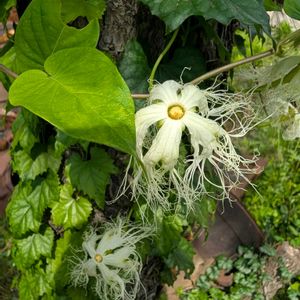 会社の定時巡回中~‼️ カラスウリの花を発見❣️😆👍