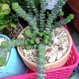 今日は多肉整理しました〜 終わりませんでした〜😅 枯れた下葉をとって、移動しやすいようにカゴに入れただけ🤗 やっと少しだけど多肉イジリ出来たから楽しかったけど、またまた目眩の発作が出てきちゃって、違う意味でストレスです🤣🤣🤣 この子はどこまで伸びるのだろうか…💦