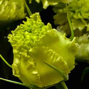 トルコキキョウ💚 ガラスの中のキキョウ💚 バラの様に綺麗でした。🥰🌹💚 花言葉 (優美)(清々しい美しさ)(希望) (よい語らい)だそうです🌹