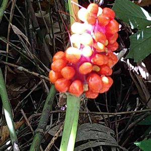 マムシグサの実 サトイモ科 テンナンショウ属 9/20 磐梯山の登山道で撮影 近づけないところに生えていたので、うまく撮れませんでした😅 球根に強い毒性があるみたいですね。 球根の汁を口に入れたら死亡する場合もあるそうです😱 名前の通り、近づくと危ない植物なんですね。