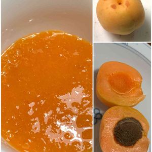 杏ひと粒😆 頂き物です♪ いただいた時は右上のまだちょっと若い感じ 数日、冷蔵庫に置いてから、大さじ1の砂糖と刻んだ杏を容器で和えてレンジでジャムにしてみました😊 甘酸っぱ〜😚ほんのり良い香り🧡 今は残った種を見つめているところです (≖_≖)じー