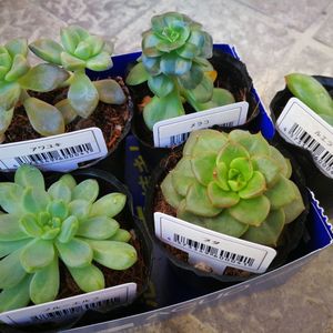 100円ショップ多肉狩り🎶🎶🎶 昨日の仕事終わり、翌日(本日)の公休日、何をしようかと考え中、ふと思い立って100円ショップにGO🚗 何時ものダイソーでは無く、店舗数の少ないミーツと言うお店☺️ 大きくは無いけれど時々、おぉ〜❗❗❗と言う物かある😄 その一つが多肉ちゃん🌵 結構な確率で名前付き😄 真っ青ながらも、知らない名前ばかりで迷った😄 で、結局5個😅 狩りました😄 この子達、どんな風に育ってくれるのか楽しみです🎶 多肉狩り迷い中の出来事、ショップスタッフさんが、この子よく伸びてますよ〜🎶 そっ❗其れは徒長だよ💦 心の中で叫びした😅 ホームセンターや100円ショップの担当さん、凄い勉強しろとは言いませんが、多肉や植物にもう少し興味を持って下さいと声を大にして言いたくなりました❗ 言っていませんが・・・・💦 超初心者の呟きでした😄