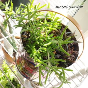 おはようございます☀今日はお休み🎵そしていいお天気です👏👏👏 蚊取り線香鉢のこの子は以前にも投稿してる青虫に似てる子🐛💚名前がわからない🙄いろいろ検索するも未だに不明😥モニラリアみたいだけど、詳しい名前がわかりません💧 特徴は葉っぱに細かいラメがついたようにキラキラしてます✨お水やりしたわけじゃないけど、いつもキラキラしててとっても綺麗なの✴💚 サボテン団地🌵の20円の子だから名前がすぐにわかると思ってたけど🤔わかんなーい😵 多分この子こんなに成長してきたけど、狩ったとき1つ20円で3個しかなかったから60円… あれ?もしかしたら?これ?草?(๑´ლ`๑)フ°フ°♡ とっても気になって、大事に育ててるけど…草かも🤣🤣🤣 どなたか、わかる方教えて下さい🙏 モニリフォルミスとは違うと思うの…🙄 さぁ、今日はお家で多肉事するぞ~💚 えいえいおぉ~٩( *˙0˙*)۶ ※追記 パピコちゃんにこの子の名前は「銀緑輝」と教えてもらいました😊パピコちゃんありがとう✨ そして、ドロサンテマム属のメセン ということと、アイツプランツだとわかりました🌱 サボテン団地🌵の20円の子では意外にもレアな子だったみたい🤔