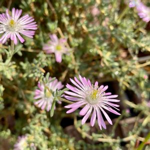 広く浅くが売りのマイガーデンですが 数少ない多肉植物の中で なんの違和感もなく庭の景色におさまっているのは アイツプランツ アイスプラントの間違いだろうと 思いたいところですが なんとも憎い事に アイツプランツなのでゴザイマス🙃🙂🙃 なんで違和感ないのかなぁ🤔 そうだ!あのポピュラーな花に 似ているからかも! そう、夏の花の定番の一つ マツバギク! 暑さに負けずに丈夫な花ですよね そういえばマツバギクも多肉植物でしたね🤔 小さな葉っぱもよく見ると小さなツブツブ があってキラキラしているし 花びらも光を反射してキラキラして いますねー 太陽にも負けない強さって なんだか羨ましい😊