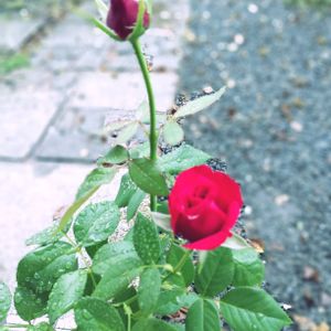 🏷️金曜日の蕾たち 参加致します💕 ☔上がりの朝、3つ付いていたバラの蕾の一つが開き初めました。 次々咲いてくれるのがとても楽しみです。 庭木のヤマボウシの葉が黄色く色付き落葉が始まり、庭が落ち葉だらけになっています。 日中はまだ暑いですが、やっと秋の気配ですね✨