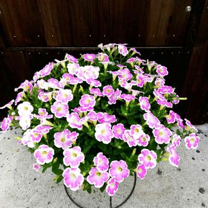 🌱サフィニアアート🍓いちごシェイク🌱 背中から滝のような😃💦を流しながら、お花をバサバサ切る切り戻しをして22日。 もうこんなにお花が咲いてきました🍓🍓🍓 強いね。 この雨の湿度…ジトジト… 又切り戻しですか? もう暴れたい気分です😢 もう少し楽しませて欲しいです🍓