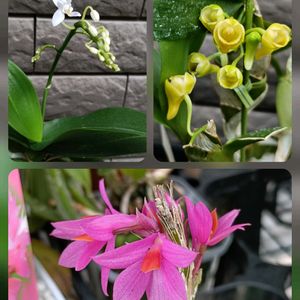 オキボタお友だちと行ってまいりました。 サトックスさんの切り売りワルケは買おうと思ってたけど、あとは…😅 …で、結局今回も盛りだくさんに🤣 でもとてもいいお買い物ができました! 1枚目は集合写真です。 2枚目…左:ブラサボラ・ノドサ 右上:ワルケリアナ。サトックスさんの切り売り。育てやすそうなのを選んでいただきました。 右下:Pecteilis hawkesiana ペクテイリス・ホーケシアナ。ダックオーキッドとも。前から気になってた。蕾付き。咲きますように! 3枚目 左:Phal. Liu's Cute Angel ' ORCHIS ' とっても小柄。 右上:ガストロキラス 右下:フラグミペディウム・ハートウェギー。蕾付き。 4枚目…左:カタセタム。写真は参考。どんなのが咲くかな🎶 右上:夏眠性球根!意外とお安いのがあってお迎え。カラデニアのハーレクインとセラピアス・オルビア。 右下:原種胡蝶蘭サメラのブルータイプ。Samera=bellina x violacea。いい香り💞