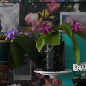 個性派ファレノプシスを見つけました。 しかもスーパーで! 段ボールトレイに入れられた、白い普通のミニ胡蝶蘭に混ざって1ポットだけ👀 ネームタグも付いていないアナタはだぁれ? GS内にもお友達が見つかりません。 画像検索してみたら‘ヴァロン’という品種に似てますが、合ってますか? 花弁に入るブチがこんなにランダムじゃないような気もします。個体差かな🤔 胡蝶蘭にしては珍しく香る品種とのこと、確かにほのかに香っています。 ②③お顔のアップ 開花するとき、茶色いセパル(萼片)から白いペタル(花弁)が覗く様子もたまらん🥹 ④蛍光灯下で見るとチョコレート色。 葉っぱが14枚も付いてます🌿 今後にも期待大。