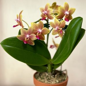 Phal.amabilis ミディ胡蝶蘭アマビリス✨ コンポストを水苔からバークチップに変えて見事に失敗😨 水苔に戻して2年ぶり復活、6輪咲いてくれました🙌