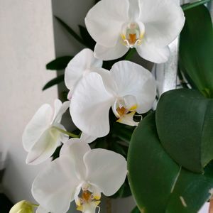 胡蝶蘭 ファレノプシス 五輪咲きました🪻 いくつ咲いてくれるのか楽しみです。 真っ白で後ろから見ると少しピンクの筋が見えるお花でした。 マイクロ胡蝶蘭もミニ胡蝶蘭もとても可愛いけど、大輪の胡蝶蘭は迫力ある!