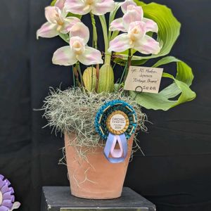 1枚目:スペシオキンギアナム “マルコ” 開花株を購入してから5年目にしてやっと咲いたꉂꉂ😁花芽が5、6本あるので華やかになりそう。 2枚目:Den. Oriental Smile 'Fantasy' AD & AM/AOS (Den. Fukujyu x Den. Yuubae)デンドロビウム オリエンタル スマイル “ファンタジー”ユーザーさんから頂いた株。3輪咲く予定だったけれど1輪カトレアの葉でスパッと狩ってしまった…時間と共にお花の色が変化するらしい。楽しみ🎶 3枚目:Den.Neo Freedom‘White Day’BM/JOGA ネオフリーダム‘ホワイトデー’そろそろ終わりかけなので集合写真を撮りました。 4枚目:ファレノプシス モウモウ柄かと思いましたがどうやら違うようです。濃い紫色に白い縁どり💜🤍だったのかな?思い出せない😭ꉂꉂ😁