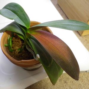 1か月前にHCからお迎えした ファレノプシス オランジュ Phal.Orange 葉っぱも少しオレンジ色がかっています🍊 胡蝶蘭育てるの得意じゃないのですが、ミニやミディの可愛らしいお花がいっぱい出回っていて、つい手を伸ばしてしまうこの頃。 根が痛みそうだったので化粧鉢から素焼き鉢にミックスコンポストで植え替えました。 蕾も順調に咲き切ったのでパチリ🤳♬💞💕✨ 来年も咲かせられますように!