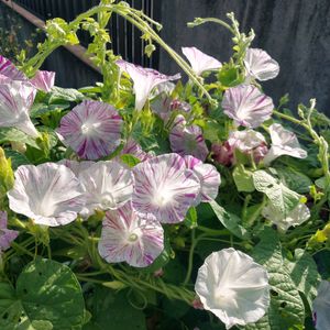 今日のお花🎆朝顔🎆 この朝顔「ヴェニス ピンク」は 2022年に撒いた種から こぼれ種で毎年発芽し たくさんの花を咲かせます🎆 今年も6月から🌱 何もせずで(水もやらないのに) どんどん育っています🌿 大切に種まきした朝顔は まだひょろひょろで頼りないなぁと これも毎年思うことです( ´•ᴗ•ก ) 2024年9月初旬 撮影📱