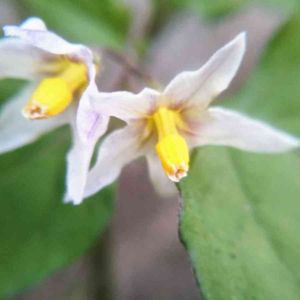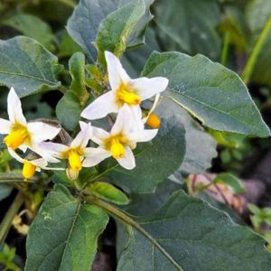水の無い側溝に咲いているのを発見。🍆ナス科のイヌホオズキの花。まぁるい実はミドリからブラックに変わっていくみたい✨実は撮らなかったけどブルーベリーっぽいです。別名が可哀想で、バカナス😅