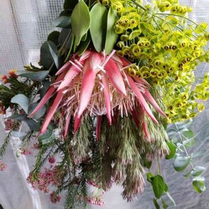 大きいスワッグになりました♪ リューカデンドロンがお気に入り♡ ボリュームが足りない気もする…(泣)