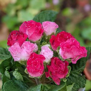 ピンクのプレミアムプリムラ〝いちごのミルフィーユ〟を先日お迎えしました❣️ 薔薇咲きが豪華ですね💕