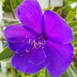 今朝の庭 冬にお迎えしいつ咲くともわからず見守っていたシコンノボタン💜 初めてのお花です。蕾はぷっくらでモフモフしてます。 1日花ですがまだまだ楽しめます💞