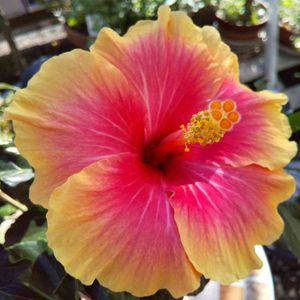 今朝の庭 2つ目のハイビスカス お名前 ミセスユミ 親しみのあるお名前です❣️