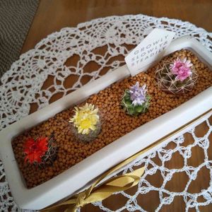 敬老の日の思わぬプレゼント‼️ 孫娘よりいただきました😄 かわいい花が付いてるサボテン4種です💕