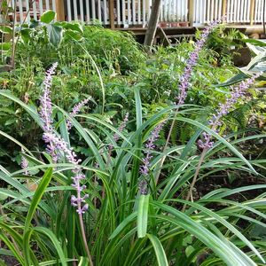 門扉の外の花壇にかわいいヤブランの花が咲いてました💕