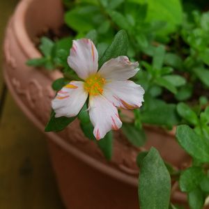 おはようございます✨ 今朝は台風の影響で激しい雨と風の朝です🍃🌀☔ 一昨日の写真ですが、1輪だけ咲いていた、しぼり柄のポーチュラカ🌼✨ 可愛いです😊💞 皆様、台風に気を付けてお過ごし下さいね💦